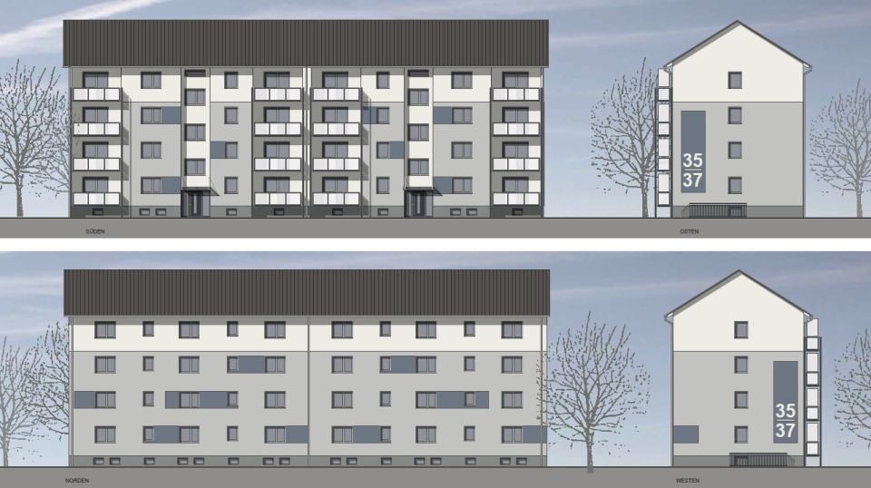 Die beiden Gebäude Fliederweg 35 und 37 aus dem Jahr 1965 mit insgesamt 16 Wohnungen werden energetisch saniert. Von Juni 2023 bis voraussichtlich Ende Juli 2024 sollen die Arbeiten dauern, die unserer Kundschaft ein Plus bringen, denn die Maßnahmen werden sich nicht nur positiv auf den Energieverbrauch auswirken: Mit der Umstellung auf Fernwärme wird sich auch die Abrechnung der Betriebskosten ändern. Die bisherige Umlage entfällt, stattdessen werden die individuellen Verbräuche berücksichtigt. Das verteilt die Kosten fairer auf die einzelnen Mieter. Kosten der gesamten Maßnahme: rund 1,315 Mio.
