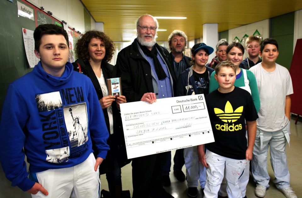 Schon zum dritten Mal hat der Lions Club Speyer Palatina in der Vorweihnachtszeit Schutzengel-Schokolade verkauft – für einen guten Zweck. Dieses Mal hat der Speyerer Service Club einen Verkaufserlös von 11.000 Euro erzielt, mit denen er nun die „Malerwerkstatt“ unterstützt. Die Präsidentin des Lions Clubs, Sabine Wüstefeld, überreichte in den Räumen der Schule im Erlich einen symbolischen Scheck an Alfred Böhmer, Geschäftsführer der GEWO Leben gGmbH. „Wir freuen uns sehr über Ihr Engagement und das Interesse an unserer Arbeit für benachteiligte Menschen“ bedankte sich Böhmer.