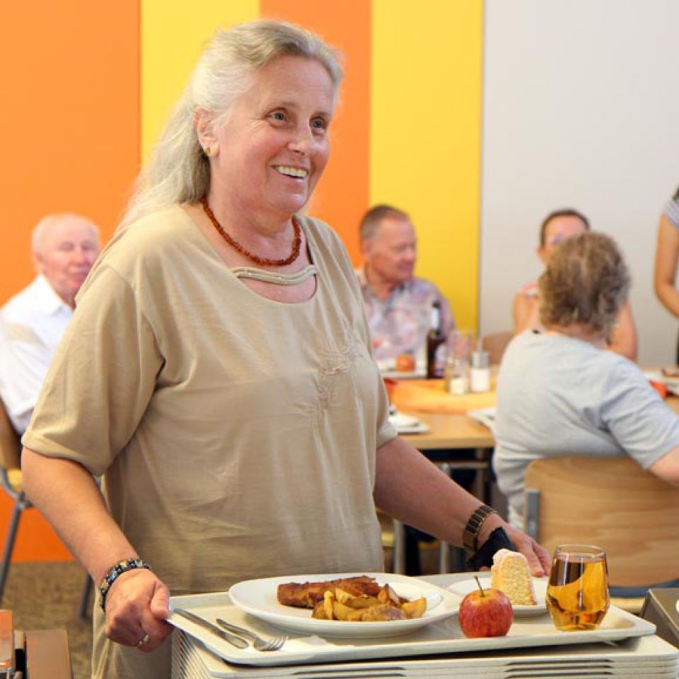 Frisch zubereitet aus saisonalen Gerichten besteht der Mittagstisch aus Vorsuppe, Hauptgericht und einer Nachspeise. „Wozu soll ich da noch meine Küche schmutzig machen, wenn ich das Essen zubereitet für 5,50 Euro serviert bekomme“, schwärmt Inge Mehrmann, die Stammgast in der Mensa ist. Für den Koch Uwe Kantz, der sein Familienunternehmen seit 25 Jahren leitet, gilt die Devise: Das, was gerade bei uns wächst, wird verarbeitet und angeboten!